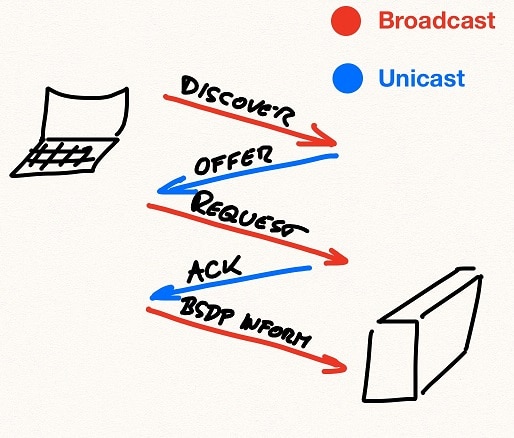- IP request, this is made by client to server in respond, though multiple servers are involved and each one can send DHCP offer to the same client that has an option to choose anyone offer.