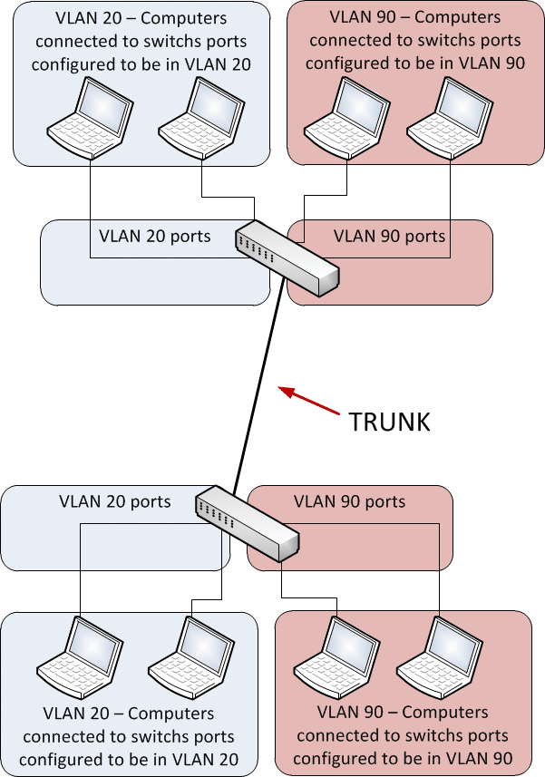 It is possible to build VLANs to pair number of connected switches. In the figure below you can see that the hosts from different VLANs are spread throughout number of switches. The biggest advantage to implement VLANs is its flexible and power-packed nature. The drawback is that it can become complicated—also for a switch— so it is important to have a way through which keeping the track of each one is easy i.e. all the users and frames when they travel the VLANs and switch fabric. (Switch fabric is actually referred to as a group of switches that shares the same information of VLAN.) This is actually the point from where the frame tagging actually starts. This method of frame identification is quite unique for assigning a userdefined ID to every single frame. It is also referred to as a “color” or “VLAN ID.” Now lets check out how it actually works: Determining the VLAN ID from the frame tag is quite essential for every single switch that the frame reaches to, so that it can discover the use of frame by seeing the info available in the filter table. In the case where the frame reaches a switch that has another trunked link, then the frame will be sent out the trunk-link port. As soon as the frame arrives at a point of exit to an access link, the switch deletes the identifier of VLAN. In this way destination device receives the frames without understanding the identification of VLAN.