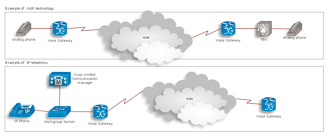 Confusion has come along with the associated taxonomy of VoIP technology and IP telephony. Both of them refer to use the same IP network to send voice messages. But the main difference between VoIP and IP telephony is that VoIP is connecting old fashion analog phones to specific gateway device who are able to convert analog voice data into digital bits and send them across the internet bypassing the expensive PSTN telephone networks. In the case of IP telephony the phones by them selves are digital devices and they are made to record the users voice directly into digital signal and send it across IP network using special Communication manager devices that are enabling this technology to work. IP telephony technology resides on IP network and natively uses the IP network for communication.