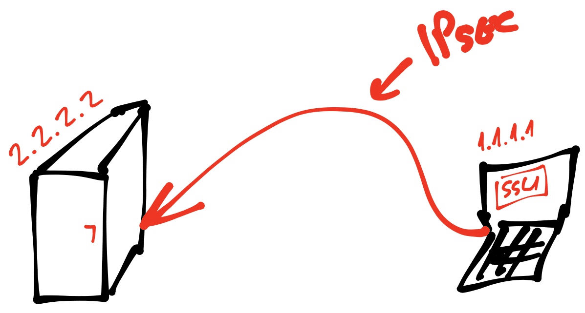 Tunnel mode may be used with any kind of IP traffic. On the other hand it must be used if IPSec is protecting traffic from hosts behind the IPSec peers. It means that it must be used if you are making a ‘Site to site’ VPN and protecting traffic for host behind both sides of the tunnel who are talking to each other across that tunnel. For example, tunnel mode is used with VPN where hosts on one protected network send packets to hosts on a second protected network via our pair of IPSec peers. With Site to site VPNs the thing is that hosts on separate (VPN connected) networks are the session endpoints and IPSec peers are just tunneling the protected traffic between the peers on the way from one host to another. We can say that IPsec peers are proxies for the hosts behind them. A picture might help here: