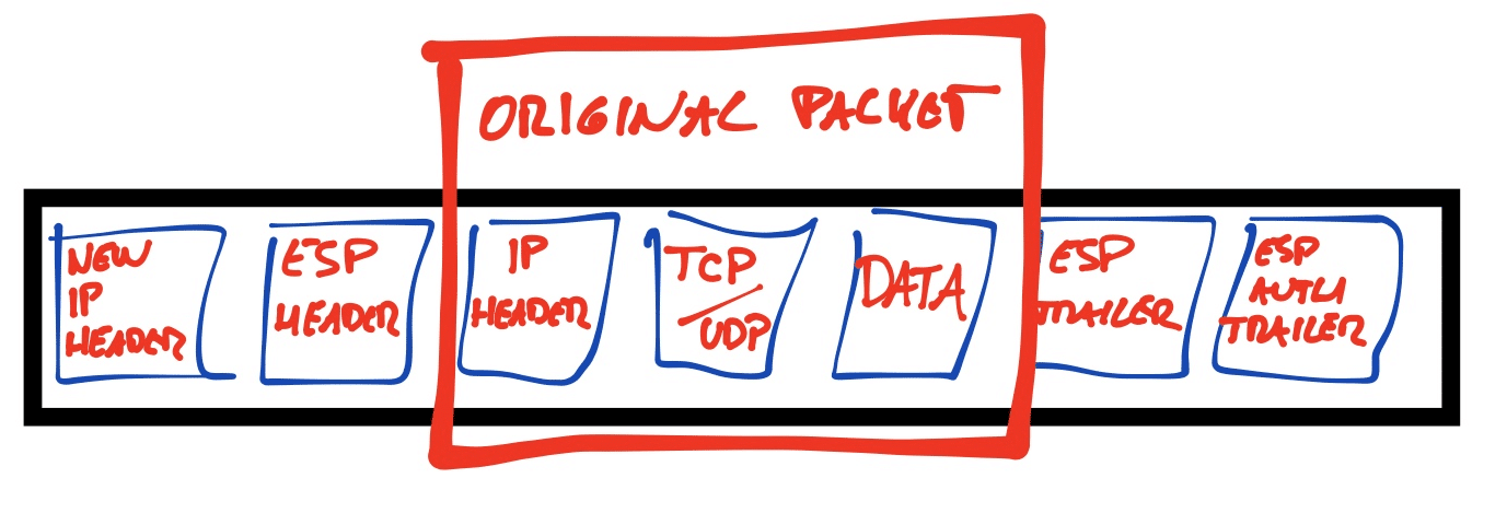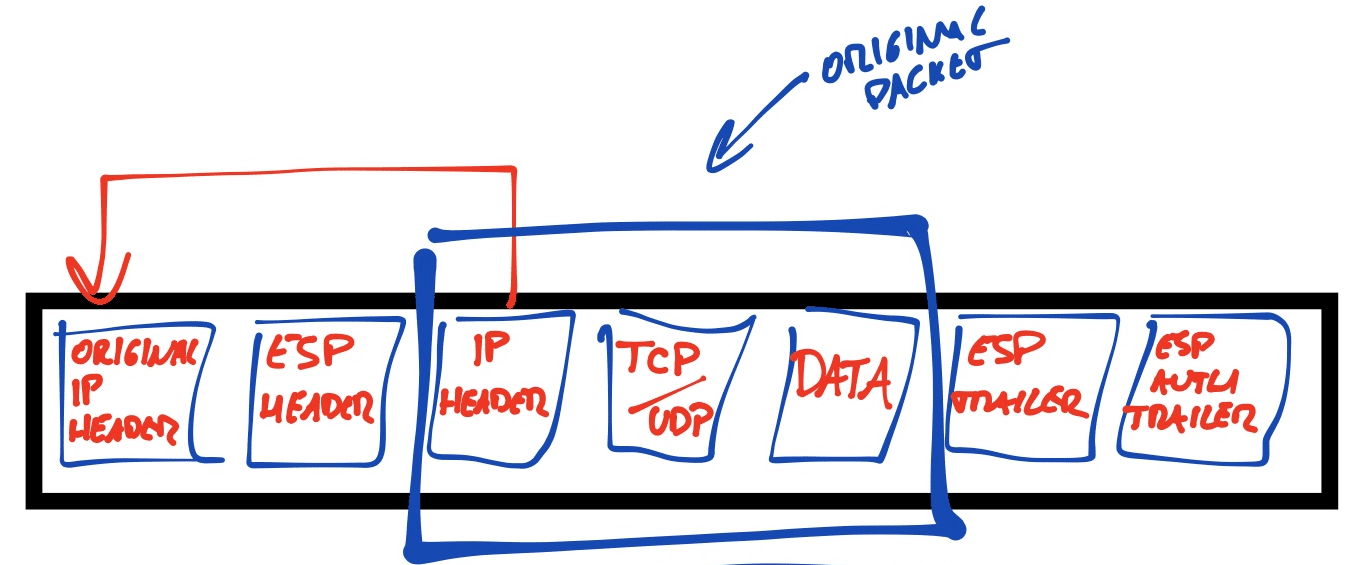 Here’s another image that will help a little to understand the encapsulation in IPSec Tunnel mode with ESP header: